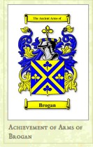 The history of this great Irish sept Brogan is woven into the romantic green fabric of the chronicles of Ireland. Despite the loss of records caused by a fire in the Dublin Records Office in 1922, an irreparable disaster to Irish historians, sufficient evidence is still available to produce a thumbnail sketch of the Brogan history. Scholarly work, flavored by legend, including such books as those by O'Hart, McLysaght, O'Brien, and the Four Masters; as well as baptismals, parish records, and ancient land grants suggest that the family name Brogan was first found in counties Mayo and Sligo (Irish: Sligeach), in the province of Connacht in Northwestern Ireland, in north Connacht where they had been a part of the ancient Ui Fiachrach since before recorded history. They were of the Ui Fiachrach Muaidhe, or northern branch, descended from a chieftain, O'Brogain, which, translated literally, means descendant "of the young sorrowful one," but claiming general descent through the Heremon line of Irish Kings. Saint Brogan was an Irish saint who lived in the 6th or 7th century. He was possibly the nephew of Saint Patrick. Some people believe that were in fact more than one Saint Brogan.